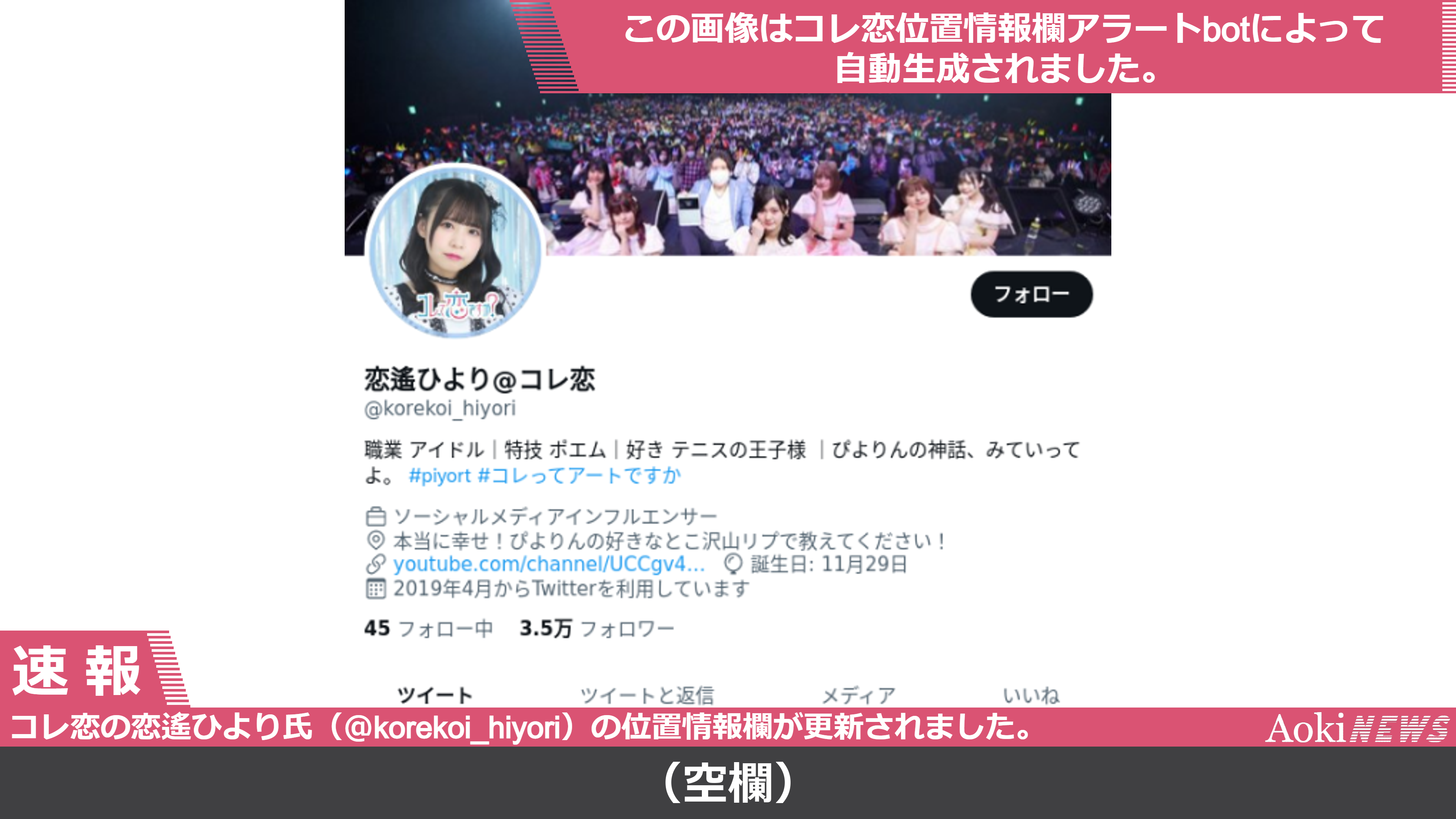 コレって恋ですか?(コレ恋)の恋遙ひより氏のTwitter(@korekoi_hiyori)の位置情報欄が更新されました。(2022年3月25日)